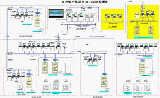 FCS field bus control system is used for plant-wide production process control. The number of control points in the whole plant exceeds 25,000 and the number of control circuits exceed 200. There are 1,138 FF field bus instruments and 75 wireless instruments. This project is the first in nonferrous industry as regards system sizing, number of FF field bus instruments and wireless instruments at present. Its technological and equipment level has reached international advanced level in the nonferrous industry.