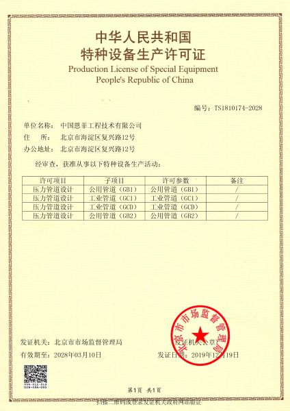中華人民共和國特種設備生產許可證(壓力管道)
