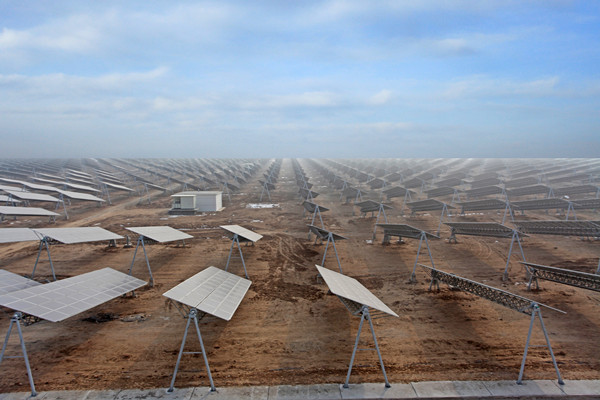 寧夏中衛并網光伏電站總規模:太陽能光伏電池組件裝機容量共60MWp,一二期電站工程采用恩菲自主研發的8°角斜單軸智能柔性聯動追日跟蹤系統,于2011年12月并網并投入運營;三期電站工程采用固定式支架安裝方式,于2013年1月并網并投入運營。
