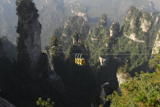 1997年10月建成。索道型式為雙線往復(fù)吊廂組式,線路水平距離868米,高差430米,單向小時(shí)運(yùn)量900人,運(yùn)行速度9米/秒。