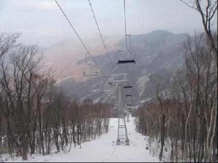 2014年1月竣工完成。索道位于朝鮮江原道元山市馬息嶺滑雪場,型式為單線循環(huán)固定抱索器四人吊椅式,線路水平距離417.747米,高差50米,單向小時(shí)運(yùn)量800人,運(yùn)行速度為2米/秒。